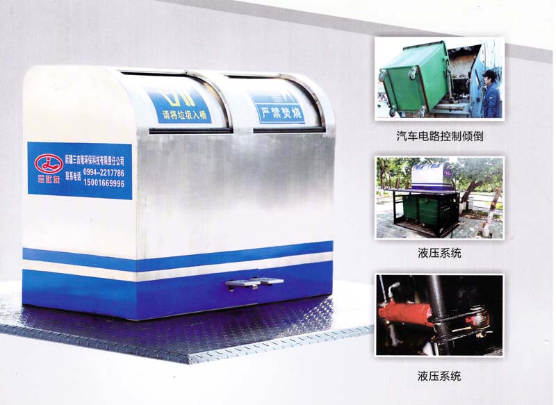 1320L升降式地埋式垃圾箱,外形美观,是我公司来合作德国先进技术、液压技术开发出来的一种具有科技含量和环保理念的新型环保产品。该产品可采用汽车电路控制或无线感应控制,内置箱容积大与老式垃圾压缩车可配套使用。将垃圾集中后压缩处理,是具有高科技高效率又能改善环境的科技新产品。
